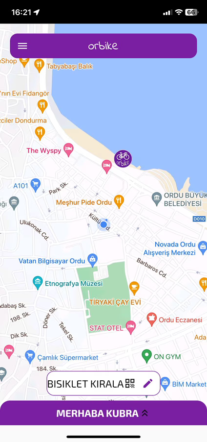 Orbıke mobil uygulaması ile kayıt, bakiye yükleme, kiralama
